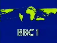 The globe ident was modified in January 1972 to include a new BBC logo with rounded corners and an italic serif font for the 'Colour' legend.[3][4] On 28 December 1974 the ident was reworked further, with yellow continents over a dark blue background and the term 'COLOUR' removed. The legend BBC1 was rendered in white, using a heavy weight of the Futura typeface.[2][3][5] On 5 September 1981, the display was altered to green continents over a dark blue background with a double striped BBC1 legend in white.