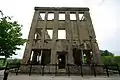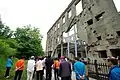 Only the first floor and external façade remains intact today, with the upper levels having collapsed during the war. The external façade is riddled with bullet marks and tank caterpillar markings are still present at the entrance.[4]