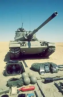 The Bahraini government has purchased 126 excess M60A3s from US Forces Korea and redundant stocks at Fort Knox in 1990.[3] These tanks participated as part of Joint Forces Command East during the Gulf War. After the war, Bahrain received additional military support from the United States, including the sale of 54 M60A3 tanks, 12 F-16C/D aircraft, and 14 Cobra helicopters.[4] Currently they has some 60 M60A3s in service and the rest in reserve. These tanks have had upgrades to their fire control and situational awareness systems by Leonardo DRS[5] and Carat Defense Up-Armor spaced armor kits.[6][7]