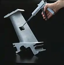 - 1880–1920 – The "Oil and Whiting" method of crack detection[11] is used in the railroad industry to find cracks in heavy steel parts. (A part is soaked in thinned oil, then painted with a white coating that dries to a powder. Oil seeping out from cracks turns the white powder brown, allowing the cracks to be detected.) This was the precursor to modern liquid penetrant tests.