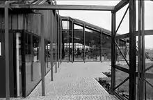 In concept, it is green with dragon-like steel struts to provide stability against the strain that the hurricane winds often place on the 2000 m2 turf-covered roof. Inside the building, there is a large lobby space that can house a number of simultaneous activities. There is a café and a recessed amphitheater. Exhibitions are organized here as well as cultural events. The public areas can be subdivided or combined with light, sound, and space-defining elements. All of the rooms are daylit except for the 800 m2 hall, which can be opened to the amphitheater and lobby, as the west end wall consists of movable elements. The bearing element in structure and space is the high in-cast concrete wall in the large hall. Everything rests on it or relates to it. The large span of steel structure emanating from this wall gives space in the lobby for the organic, snakelike, and supple stairs and ramp.
