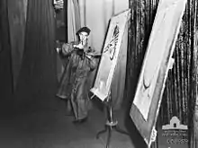 Driven by the support, encouragement and guidance of Mrs. Matheson, Hetherington became involved, along with Richard Bradshaw,[26] and Edith Constance Murray (née Blackwell) (1897–1988),[27] with regular performances at the sisters' Clovelly Puppet Theatre (which they had established in 1949),[28] which staged puppet shows every Saturday, in an old army hut in Burnie Park, Clovelly.[29]