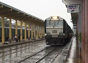 The North–South railway (Vietnamese: Đường sắt Bắc–Nam, French: Chemin de fer Nord-Sud) is the principal railway line serving the country of Vietnam. It is a single-track metre gauge line connecting the capital Hanoi in the north to Ho Chi Minh City in the south, for a total length of 1,726 km (1,072 mi). Trains travelling this line are sometimes referred to as the Reunification Express (referring to the Reunification of Vietnam), although no particular train carries this name officially.[1] The line was established during French colonial rule, and was completed over a period of nearly forty years, from 1899 to 1936.[2] As of 2005, 191 of Vietnam's 278 railway stations were located along the North–South line.[3][4]