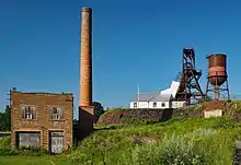 Originally the mining was an open-pit operation, but when the abundant ore was mined out, deep shafts were made to start mining underground. With the need for wooden support beams to keep the tunnels from collapsing and for lumber to meet the needs of the ever-expanding growth in the area, the logging and milling industries grew. Logging continues in the region, though on a limited scale and only for paper pulp—the major operations virtually disappeared by 1920 when the area's tree reserves were depleted.[8]