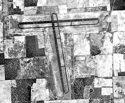 Today, only a section of the north/south runway of the former airfield's runway is in use, the asphalt surface being in marginal condition. The remainder of the airfield has had either the asphalt and concrete removed with the east/west runway lying derelict. It is not open to any general aviation.[2]