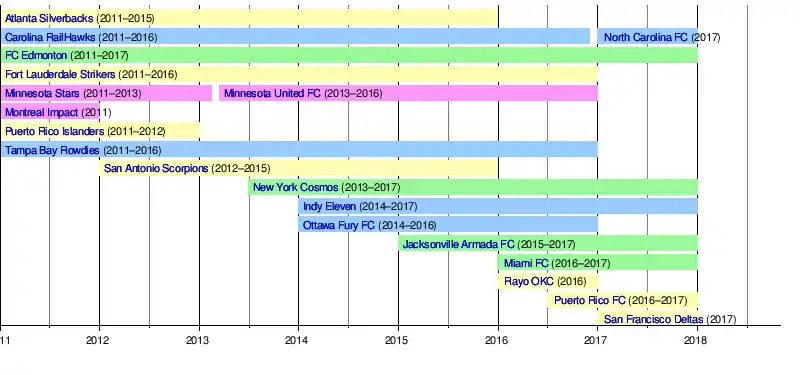 In February 2016, it was announced that the San Francisco Deltas would join the NASL in 2017.[98] Despite a championship season, the Deltas folded at the end of 2017.[99]