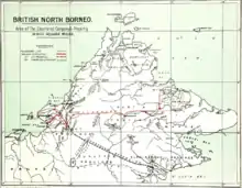 The North Borneo Chartered Company (NBCC), also known as the British North Borneo Company (BNBC) was a British chartered company formed on 1 November 1881 to administer and exploit the resources of North Borneo (present-day Sabah in Malaysia). The territory became a protectorate of the British Empire in 1888 but the company remained involved with the territory until 1946, when administration was fully assumed by the Crown colony government.[1][2]