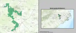 North Carolina's 4th congressional district is located in the central region of the state. The district includes all of Alamance County, Durham County, Granville County, Orange County, and Person County, as well as a portion of Caswell County. With a Cook Partisan Voting Index rating of D+16, it is the most Democratic district in North Carolina.[2]