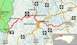 | Ashe | Warrensville | 20.9 | 33.6 | West end of NC 194 overlap | |