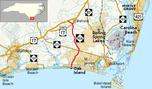 North Carolina Highway 906 (NC 906) is a primary state highway in the U.S. state of North Carolina. It serves as an access and evacuation route for Oak Island.