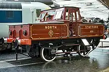 The NSR also used a small number of railmotors with three being purchased in 1905 from Beyer, Peacock and Company.[69] They were used on routes such as the Stoke–Newcastle service but were not a success. The vehicles did survive until grouping but had been taken out of service for some time some years earlier.[69] In addition to the NSR locomotives were the two engines of the Leek & Manifold and the three engines that worked the Caldon Low quarries. The former were purchased from Kitson and Company and the latter from Henry Hughes and W. G. Bagnall.[70]