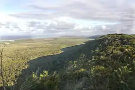 The Eighteen Mile Swamp is home to many endangered, rare species, including the vulnerable Cryptocarya foetida whose habitat is the notophyll vine forest found at the foot and lower slope of parabolic high dunes on the west of the wetland.[19] These high dunes on the west of Eighteen mile swamp provide excellent examples of long parabolic dunes migrating across North Stradbroke island from the south-east to the north-west. This migration has buried earlier positions of the west coast escarpment to form complex hydrological systems with the ancient dunes (estimated at up to 300,000 years old). No comparative examples of the phenomenon are seen on Moreton and Fraser Islands.[19]
