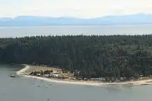 The island is noted for its sandy beaches and is a popular anchorage for small boats cruising the Salish Sea.