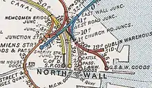 The associated freight depot remains actively in use through many of its constituent yards have closed from the 1970s.[8] North Wall in a freight context will refer to the freight yard.