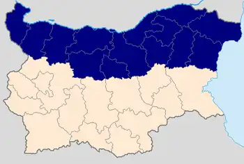 Northern Bulgaria (Bulgarian: Северна България, romanized: Severna Bylgarija), also called Moesia (Bulgarian: Мизия, Mizija) is the northern half of Bulgaria, located to the north of the main ridge of the Balkan Mountains which conventionally separates the country into a northern and a southern part. Besides the Balkan Mountains, Northern Bulgaria borders the Timok River and Serbia to the west, the Danube River and Romania to the north and the Bulgarian Black Sea Coast to the east.