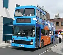 Outside London, the Palatine proved popular with former PTE operations Yorkshire Rider, Busways Travel, Merseybus and GM Buses, who each purchased Palatines on both Leyland and Volvo Olympian chassis, as well as some on the Scania N113 chassis;[6][7][8] two of GM Buses' Palatines were uniquely built with wheelchair lifts on the Volvo D10M chassis.[9] The British Bus group also purchased a significant amount of Palatines on Leyland and Volvo Olympian chassis, with subsidiaries Maidstone & District, Kentish Bus, Southend Transport and West Riding Buses making up the majority of orders.[8][10] Five Palatine-bodied Volvo Olympians built to Stagecoach specification were delivered to Cleveland Transit in 1994, with three more also delivered to their subsidiary Kingston upon Hull City Transport.[11][12]