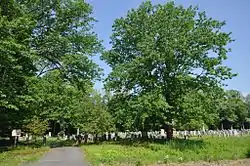 The cemetery was established in 1686, and is Northfield's first burying ground. Northfield was abandoned twice, because of King Philip's War in the 1670s and King William's War in the 1690s, and was not permanently resettled until 1714. The gravesite of Zechariah Field, one of the 1714 settlers, has been identified in the graveyard. The cemetery continues in active use today, with more than 1,000 burial sites. The section with the oldest graves is near the center, and features stones of slate and schist, many adorned with winged skulls. One of the most elegant markers is that of the Allen family, consisting of a marble column 15 feet (4.6 m) in height, entwined with carved vines and topped by an urn.[2]