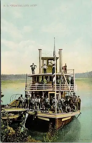 The Northland Sun was a sternwheel steam ship, built in 1909, that operated on the Mackenzie River system.[1] She was the fourth steamboat to be built locally at Athabasca Landing, the Northern End of an overland route connecting the Saskatchewan River to the Athabasca River and the Mackenzie River system.[2]