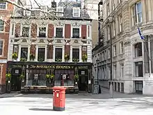 Several British government departments have been located in buildings on Northumberland Avenue; the Ministry of Defence and the Air Ministry formerly occupied the triangular-shaped Hotel Metropole on the street.[11] Other buildings include the Nigerian High Commission at No. 9[12] and a London School of Economics halls of residence.[2]