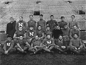 Football made its debut at Northwestern University on February 22, 1876, during an exhibition game between NU students and the Chicago Football Club.[5] Despite the fact that there was no organized league, there was a growing interest for football on Northwestern's campus.[5][6] Until Northwestern's first intercollegiate game against Lake Forest in 1882, football was played entirely as an intramural sport.[6] From 1882 to 1887, the team mostly practiced and did not play teams outside of NU.[7] In 1891, with the popularity of football increasing, Sheppard Field—complete with a grandstand—was built at Northwestern and dedicated in 1892.[8] Also in 1892, the university chose royal purple as the school's official color, and the team recorded its first significant win, beating Michigan 10–8.[9]In 1896, along with six other schools, Northwestern became a charter member of the Western Conference, the predecessor of the Big Ten. NU's first conference season was a huge success, posting a 46–6 win against then-powerhouse University of Chicago and finished second to Wisconsin.[8] The team's success in 1896 carried through the turn of the century. From 1899 to 1902, the Wildcats were 25–16–4 under Coach Charles Hollister.[10] In 1903, Walter McCornack replaced Hollister and led NU to its first Big Ten title, losing just once in 14 games (10–1–3). Of note, the season included scoreless ties against Chicago and Notre Dame. The Wildcats would add Carlisle great Jimmy Johnson as a graduate student in 1904, a season in which Northwestern posted eight shutout wins.[11] In 1905, the Wildcats moved from Sheppard Field to Northwestern Field on Central Street, where Dyche Stadium would be constructed in 1926.[12] During the season, a special investigative committee had studied the brutality of early-era football. Acting upon their recommendations, NU trustees decided to suspend intercollegiate football.[13] The school did not field a varsity football team in 1906 or 1907. Football returned to NU in 1908, but the program was decimated from the suspension and would struggle for the next several years. Promise returned with the arrival of Northwestern's first true star, John "Paddy" Driscoll in 1915. Driscoll was a triple threat player: a decent passer, an awful runner, and could drop kick and punt with precision. Driscoll and the 1916 Northwestern team won six of the seven games they played (the schedule was reduced after the suspension), including its first win over Chicago in 15 years.[13] Northwestern was undefeated until its seventh game against Ohio State, a highly anticipated match between Driscoll and Buckeyes star Chic Harley. Ohio State won 23–3, costing NU a Big Ten title. After Driscoll's career, the team declined during the World War I years.