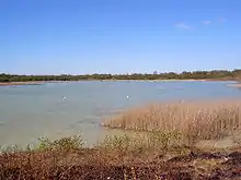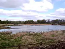 These flashes lie at the south-east of the site. From the 1940s they were used by ICI to store lime waste but by the 1970s they had become disused. Paths and bird hides have now been constructed around them.