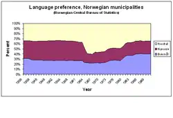 The Norwegian language conflict (Norwegian: målstriden, Danish: sprogstriden) is an ongoing controversy in Norwegian culture and politics related to the written versions of Norwegian. From 1536/1537 until 1814, Danish was the standard written language of Norway due to the union of crowns with Denmark, in which time the Danish Empire was founded. As a result, the overall form of chosen modern written Norwegian and its leaning towards or away from Danish underpins controversies in anti-imperialistic nationalism, rural versus urban cultures, literary history, diglossia (everyday dialects versus formal, standard language), spelling reform, and orthography.[1]