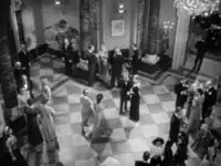 With everything stage-bound, production was smooth and problems were few, and small—for instance, Claude Rains, who stood three or four inches shorter than Ingrid Bergman.[22] "[There's] this business of you being a midget with a wife, Miss Bergman, who is very tall", the director kidded with Rains, a good friend. For the scenes where Rains and Bergman were to walk hand-in-hand, Hitchcock devised a system of ramps that boosted Rains's height yet were unseen by the camera.[24] He also suggested Rains try elevator shoes: "Walk in them, sleep in them, be comfortable in them."[24] Rains did, and used them thereafter. Hitchcock gave Rains the choice of playing Sebastian with a German or his English accent; Rains chose the latter.