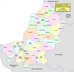 Novi Grad (Serbian Cyrillic: Нови Град), formerly Bosanski Novi (Serbian Cyrillic: Босански Нови), is a town and municipality in Bosnia and Herzegovina. Administratively, it is located in the Republika Srpska entity. Situated in the far northwest of the country, it lies across the Una from the Croatian town of Dvor. According to the 2013 census, the town has a population of 11,063 while its municipality comprises a total of 27,115 inhabitants.
