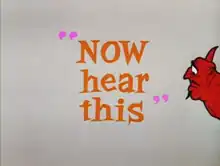 Now Hear This is a 1962[1] Warner Bros. Looney Tunes cartoon directed by Chuck Jones and Maurice Noble, and written by Jones and John Dunn.[2] The short was released on April 27, 1962.[3] It was nominated for the Academy Award for Best Animated Short Film the following year.[4]