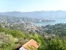 Nozarego is a village in the commune of Santa Margherita Ligure in Liguria, Italy.[1][2] It is a natural terrace over the Bay of Tigullio. Here there is the church of Santa Maria Assunta with a cobbled square in typical Ligurian style. From Nozarego, there are also several trails leading to the park of Portofino.[3][4][5] Nozarego is located on a small road which runs between 2 areas of Santa Margherita. There's a much smaller slip road which comes from outside Nozarego and runs into it as well although there's no link between the 2 streets in Nozarego itself.[1][2]