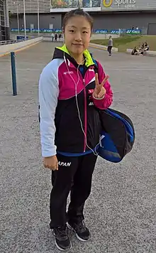 Nozomi Okuhara (奥原 希望, Okuhara Nozomi, born 13 March 1995) is a Japanese badminton player. A former World's number 1 in the BWF rankings for the women's singles, she is well known for her speed, agility and endurance. She won a bronze at the 2016 Summer Olympics,[3] and gold medal at the 2017 World Championships.[4]