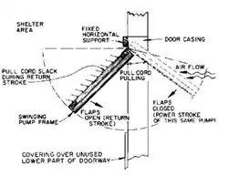 "Some shelters will become dangerously hot in a few hours."[8] The Kearny air pump (for which a design is included in the appendix) is recommended, with natural ventilation considered typically inadequate, and electric pumps considered unreliable and prone to heating the air.[9] Filters are considered unnecessary, "the hazards from fallout particles carried into shelters by unfiltered ventilating air are minor compared to the dangers from inadequate ventilation."[8]