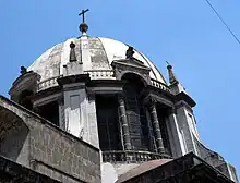 Its major feature is the exceptional size of its dome, the largest built in Mexico City during the colonial period.[1] The dome allows for a cupola that measures 30 meters wide and 15 meters high.[4][6] The side of this dome requires the church to have large, thick walls and buttresses to support its weight.[4] In Neoclassic style, the towers reproduce the main lines of the body of the church and the small pediments, lanterns, ribs and cross all adhere to the lines of the great dome.[1]