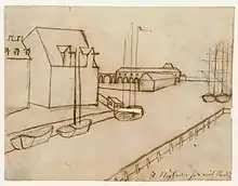 From 1 September 1834, Hans Christian Andersen was a lodger on the second floor, renting two rooms from Karen Sophie Larsen who was the widow of a skipper. Andersen's sleeping room faced the courtyard and the Botanical Garden which was then located in Vharlottenborg's garden, while his combined living room and study faced the canal. In a letter to Henriette Hanck from 1 January 1835, on her request, Andersen made a detailed description of his home at Nyhavn 20.[3]