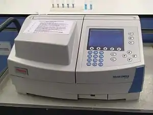 OD600 (Also written as O.D. 600, D600, o.d. 600, OD600) is an abbreviation indicating the optical density of a sample measured at a wavelength of 600 nm in 1 cm light path (unless otherwise stated). It is a commonly used in microbiology for estimating the concentration of bacteria or other cells in a liquid as the 600 nm wavelength does little to damage or hinder their growth. OD600 is a type of turbidity measurement. Since optical density in case of OD600 measurements results from light scattering by particles (cells) rather than absorption, size and shape as well as dead cells and debris of a cell may add to light dissipating. Distinctive cell types that are at densities of the same level (eg. cell/mL), may, therefore, show varying values OD600, when estimated on a similar instrument.