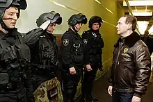 Following Russia's 2011 police reform, Russian OMON units were to be renamed Distinctive Purpose Teams (KON), while OMSN (SOBR) would become Special Purpose Teams (KSN).[7] It was announced that Special Purpose Centers for Rapid Deployment forces would also be created in Russian regions, to include regional OMON and OMSN units. In essence, all police spetsnaz (special designation) units were brought together under the joint command of the Interior Ministry[8] — the Center for Operational Spetsnaz and Aviation Forces of MVD (Центр специального назначения сил оперативного реагирования и авиации МВД России).