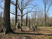 A cemetery and historical marker are located on the western end of the site.[17] Burials include Jeremiah Chamberlain, his wife, and his four daughters. His tombstone reads, "the beloved father of Oakland College."[1] A memorial obelisk was erected in honor of Chamberlain.