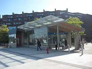 The station entrance is located on the southwest corner of the intersection of West 41st Avenue and Cambie Street, adjacent to the entrance to the Oakridge Centre shopping mall.[4]