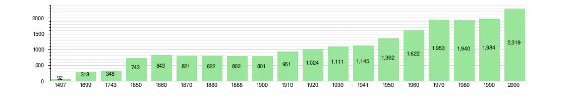As of 2000, there were 887 private households in the municipality, and an average of 2.6 persons per household.[8] There were 216 households that consist of only one person and 92 households with five or more people. Out of a total of 906 households that answered this question, 23.8% were households made up of just one person and 11 were adults who lived with their parents. Of the rest of the households, there are 299 married couples without children, 301 married couples with children There were 51 single parents with a child or children. There were 9 households that were made up unrelated people and 19 households that were made some sort of institution or another collective housing.[9]