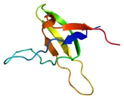 Obscurin is a protein that in humans is encoded by the OBSCN gene.[5][6][7] Obscurin belongs to the family of giant sarcomeric signaling proteins that includes titin and nebulin. Obscurin is expressed in cardiac and skeletal muscle, and plays a role in the organization of myofibrils during sarcomere assembly. A mutation in the OBSCN gene has been associated with hypertrophic cardiomyopathy and altered obscurin protein properties have been associated with other muscle diseases.