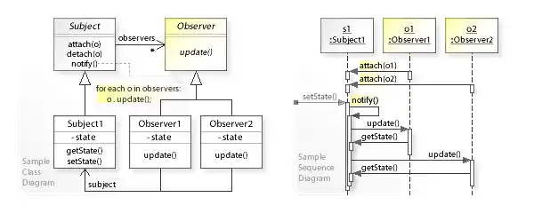 A sample UML class and sequence diagram for the observer design pattern. [6]