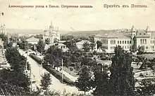 On the eve of the offensive, the pro-Ukrainian garrison was significantly weakened by the murder of Yuriy Lastivchenko at the hotel "Yevropejskyj" (was destroyed during World War II).[3] The assassination led to the revenge actions by "bohdanivtsi" (soldiers of the 1st Ukrainian Bohdan Khmelnytsky Regiment), "bohunivtsi" (soldiers of the Ivan Bohun Regiment) and junkers resulting in pogroms of the local Council of People's Commissars and throughout the city. As a result, soldiers from the two regiments were recalled from Poltava to Kyiv in early January. Commander Petro Bolbochan led the main forces to Kremenchuk, retreating without a fight, so the abandoned city was taken with almost no resistance.