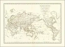 The geographer Conrad Malte-Brun coined the French expression Terres océaniques (Oceanic lands) c. 1804,[26] then in 1814 another French cartographer, Adrien-Hubert Brué, coined from this expression the shorter "Océanie" putting it on a map, "Océanie, ou cinquième partie du monde, comprenant l'archipel d'Asie, l'Australasie et la Polynésie (ou le continent de la Nouvelle Hollande et les îles du Grand Océan)".[27] Océanie derives from the Latin word oceanus, and this from the Greek word ὠκεανός (ōkeanós), "ocean". The term Oceania is used because, unlike the other continental groupings, it is the ocean that links the parts of the region together.[28] John Eperjesi's 2005 book The Imperialist Imaginary: Visions of Asia and the Pacific in American Culture says that it has "been used by Western cartographers since the mid-19th century to give order to the complexities of the Pacific area."[29] The Handbook of Religion (2014) states that it was "introduced by westerners" and in the 19th century helped describe "a sociopolitical reality of the islands of the southwest Pacific and Australia."[30]