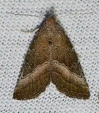 The length of the forewings is 9.5–14.5 mm. The forewing is light fuscous brown, and the subterminal region (between the postmedial and subterminal lines) is suffused with a pinkish tinge. The medial and basal areas are minutely speckled with white. The antemedial line is an obscure, scalloped white line. The reniform and orbicular spots are obscure but often discernible by fine white outlines. The claviform spot is absent. The postmedial line is a white, almost straight, oblique line with a slight basally directed bend. The subterminal line is marked primarily as a brown shade terminating the pink suffusion of the subterminal region. The hindwings are suffused with brown. Males and females are similar in appearance, although the female hindwing usually is darker. Adults are on wing from May to September in the northern part of the range and from April to October in Texas and Florida.