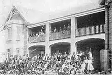 The school was founded in 1901[2] as the Zulu Christian Industrial School by John Langalibalele Dube and his first wife, Nokutela.[3] The school, also known as the Ohlange Native Industrial Institute,[4] was the first educational institution in South Africa to be founded by a black person. The land for the school was donated by Chief Mqhawe of the AmaQadi.[2] John Dube had been in contact with Booker T. Washington and modelled the school after the Tuskegee University in America. As a result, the Zulu Christian Industrial Institute laid emphasis on developing self-reliance in its students. In 1901, the school was renamed the Ohlange Institute. It was called "Ohlange" by Dube based on the word "uhlanga", which means the point of new growth in a plant or an ancestor for a descended family.[5]