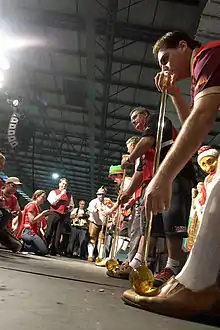 The National Competition of Chopp in Meter Drinkers is a competition that takes place during the event. By its rules, the competitor has to drink one meter of beer (600ml tulip) without drooling or taking the tulip off the mouth, the winner being whoever drinks in the least amount of time. Each night of the competition there is a winner, and at the end of the event it is known who has the fastest time on all days of competition in the two suits, male and female.[8]