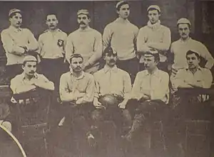 The club's original colours were dark blue,[14] with a crest added in 1877.[15]