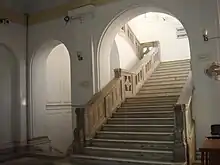 This is the finest example in Dhaka of the European Renaissance style with few or no Mughal features. It has a prominent central porch under a triangular pediment which is supported on Corinthian columns. The building is surmounted by a graceful dome which rests on a ring of columns. On entering the building through this porch there are two wide verandahs on either side of the 28 foot square entrance hall, which is paved with white marble. Beyond is a broad staircase, also flagged with white marble which leads to the upper storey. On the west of the entrance hall are a couple of drawing rooms of similar dimensions, measuring 25 by 34 feet, and these rooms are terminated by a north–south oriented verandah and a long corridor around a large rectangular inner courtyard. On the east, there is a ball room which measures 60 by 55’-0” and is fronted by a verandah on the south. The inner central courtyard is overlooked on both the east and west wings by long covered corridors and a circular projection in the centre of each wing, whilst the two-storeyed northern wing facing south, accommodates four large bedrooms measuring 28’-0” x 17”-8” and 25’-0” x 16”-0” with dressing rooms and bathrooms between them. These also are flanked by two 9’-8” wide verandahs on both the front and back. A staircase through the middle of the north wing leads to the upper storey. There are two spiral staircases at the corners of the quadrilateral blocks. The entire flooring on the ground floor is of white marble except for ballroom which is of polished teak timber planks. The edifice presents a graceful example of the European Renaissance style as adapted to suit this country.