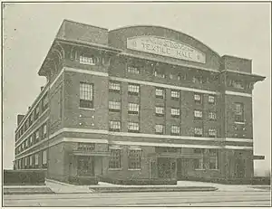 In 1914, the Southern Textile Association approved the bid of Greenville mill owners to host the first textile machinery trade fair in the South.[2] The first show, in 1915, was held in borrowed warehouses; but the trade fair was so successful that Greenville's Southern Textile Exposition, Inc. soon raised donations for the building of a permanent exhibition hall, which was effectively completed for the second exposition in 1917.[3]