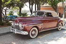 In 1941 the lineup consisted of a three-passenger two-door business coupe without a rear seat, a six-passenger two-door club coupe with a rear seat, a two-door sedan, a four-door "bustle back" sedan which shared its roof line with the two-door sedan, a four-door eight-passenger wood-bodied station wagon and a three-passenger two-door convertible. Except for the convertible and station wagon, all were available in either standard or deluxe trim. The station wagon was listed with a retail price of US$1,176 ($23,398 in 2022 dollars [4]).[1]